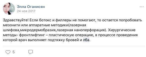 Косметолог предлагает разные методики, как вариант — рассмотреть возможность проведения фронтлифтинга.