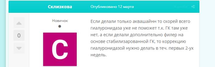 В случае если нужно вводить гиалуронидазу, врач объясняет, что делать это нужно не позже двух недель после контурной пластики.