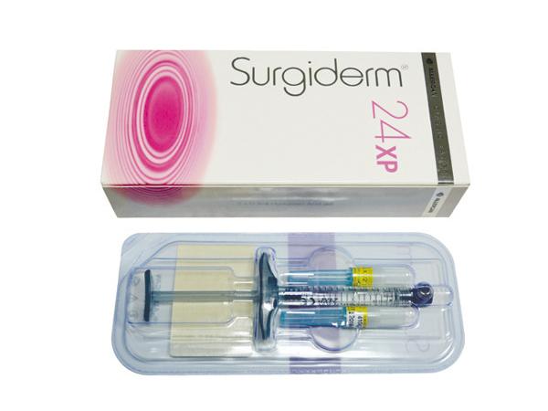 Французский препарат от производителя Corneal, который сейчас находится в составе Alegran. Для коррекции складок средней глубины используется гель на основе гиалуроновой кислоты — 24 ХР. Препарат Сурджидерм 30 ХР применяют для заполнения более глубоких заломов. Результат сохраняется около года. Цена на Surgiderm составляет 8000–9000 рублей. Форма выпуска — 2 шприца по 0,8 мл.