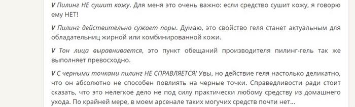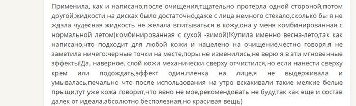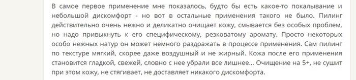В то же время на тематических форумах и сайтах интернет-магазинов есть положительные отзывы об этом пилинге. Потребители подтверждают эффективность продукта, заявленную производителем.