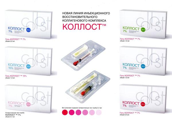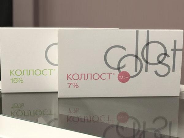 Коллост — серия биогелей на основе нативного коллагена. Применяется в медицине и косметологии для ускорения процессов регенерации. Назначается для заполнения глубоких морщин, разглаживания шрамов, рубцов, моделирования овала и формы губ. Требует курсового воздействия, эффективно в комплексе с мезотерапией биоревитализацией. Результат наблюдается на протяжении года.
