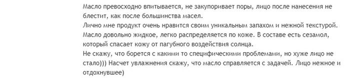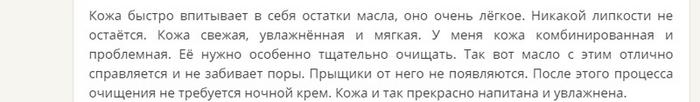 Несмотря на то что многие хвалят масло за его некомедогенность, автор следующего отзыва, Мария, советует внимательно относиться к своей своей коже. Ведь риск, что средство закупорит поры, все же существует.