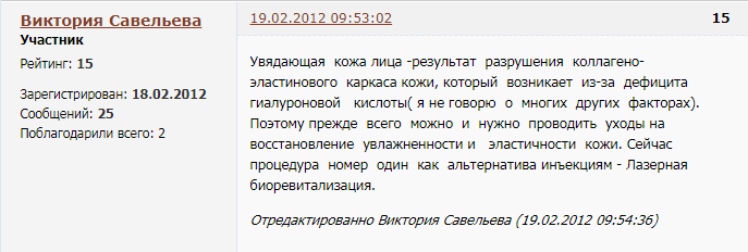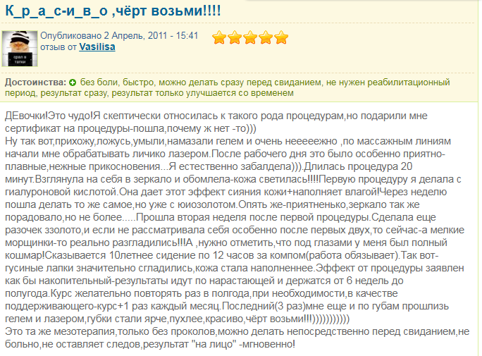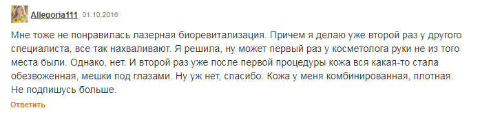 Как правило, биоревитализация лица получает хорошие отзывы от тех, кто испытал ее действие на себе. Например, такие:
