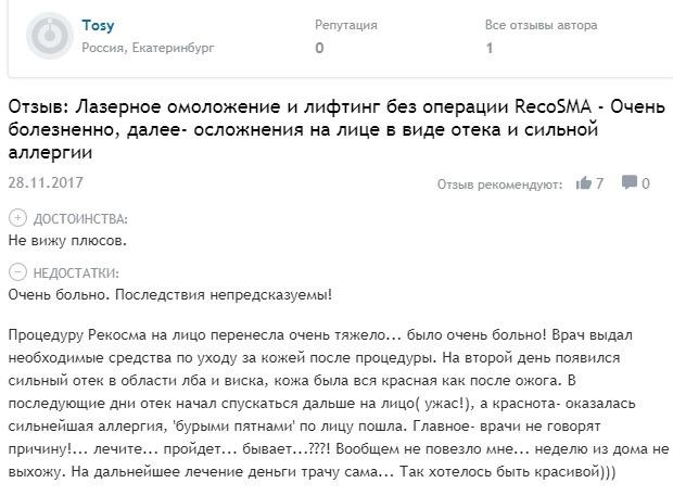 Следующий участник подчеркивает высокую эффективность процедуры и болезненность ее проведения, несмотря на заверения косметологов об отсутствии необходимости в анестезии.