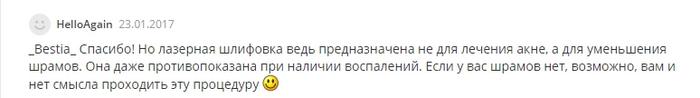 Автор пишет, что процедура назначается не для лечения акне, а для коррекции шрамов.