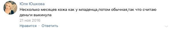 Пациентка говорит, что идеальный результат быстро ликвидируется.