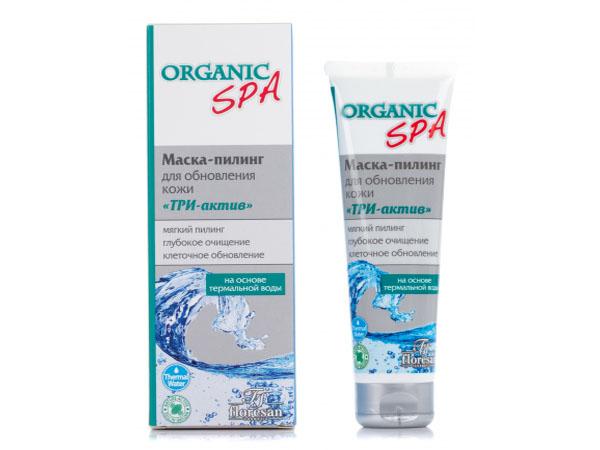 Маска Organic Spa Три актив позволяет мягко удалять загрязнения, увлажнять и отбеливать кожу. Содержит термальную воду испанского источника, насыщает покровы минералами, снимает воспаление, раздражение. Также в составе присутствуют экстракты ламинарии, папайи, ананаса, лимонная кислота, каолин. В результате применения лицо выглядит свежим, проходит пигментация, удается выровнять сеточки морщин. Наносится на 2 минут, легкими массажными движениями распределяется, затем смывается водой. Производится Органик в России, стоимость — 110 руб.