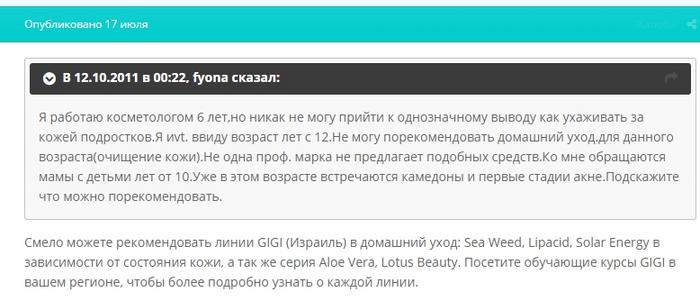 Косметолог рекомендует для ухода за подростковой кожей марку GiGi, которая включает также эффективную пилинг-маску.