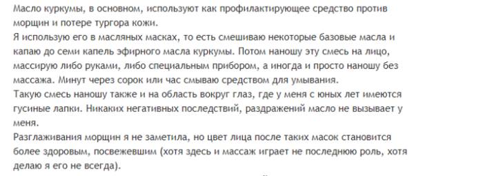 В интернете встречается немного отзывов людей, испытавших на себе волшебное действие масла куркумы.