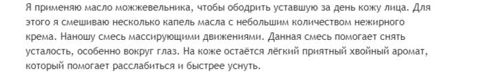 В интернете можно ознакомиться с отзывами девушек, включающих эфирное можжевеловое масло в уход за лицом.