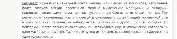 Внимание! По возможности обязательно тестируйте малиновую вытяжку перед покупкой. В полной мере обеспечить солнцезащитные, омолаживающие, регенерирующие свойства способен только настоящее масло из малины.
