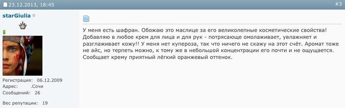 Положительная оценка полезного косметического действия масляной формы шафрана
