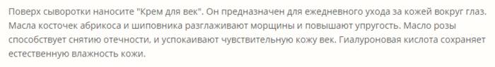 Косметолог описывает состав крема для век, масло шиповника в котором разглаживает морщины, повышает упругость.