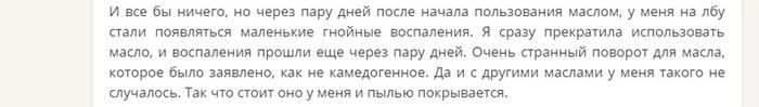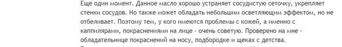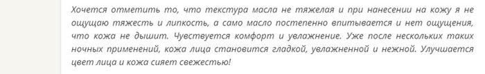 Девушка, оставившая следующий отзыв, советует применять маслянистую жидкость не только для увлажнения кожного покрова и избавления его от морщин.