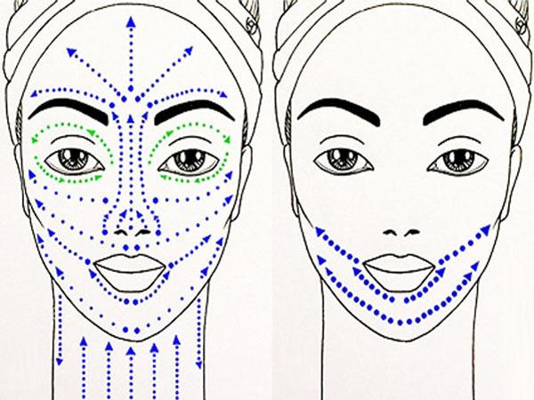 Применяется в салонах и в домашних условиях. Эффективен при отеках любой сложности, устраняет мелкие мимические морщины и постепенно разглаживает более глубокие. Суть заключается в поглаживании и надавливании на определенные лицевые участки. Каждое движение выполняется по 30 секунд обеими руками:
