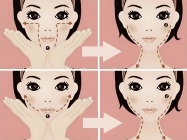 - Рукой надавливают на щеку. Второй — фиксируют силу нажима. Продвигаются вдоль скулы к уху. От конечной точки выполняют одновременно резнями руками движение по краю нижней челюсти к подбородку, завершающее действие.