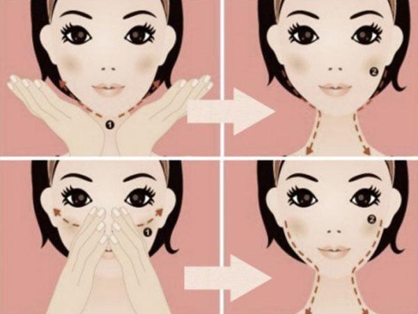 - Формирование овала. Краем ладони у основания большого пальца нажать на контур (область под щекой). Осторожно направить руку в область глаза, бережно подтягивая кожу.