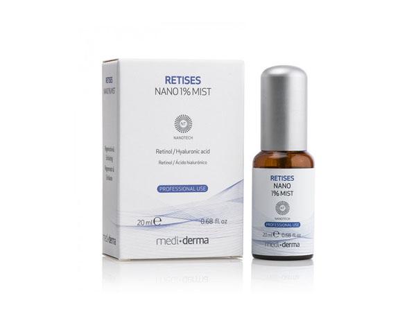 - RETISES NANO. 1%-ный пилинг-гель с ретинолом (ph 7) оказывает омолаживающее действие, питает дерму, помогает избавляться от пигментированных участков и стрий. Содержит солнцезащитные фильтры. Применяется в комплексе с другими процедурами (в том числе, с химическим пилингом). Выпускается в маленькой тубе объемом 15 мл. Стоит порядка 5000 рублей и может быть использован для домашнего ухода. Также в серии RETISES NANO есть сыворотка-мист против акне, пигментации и других признаков старения дермы.