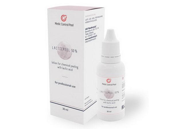 - Martinex Group. Российский производитель Мартинекс предлагает серию MedicControlPeel, которая содержит Lacticpeel с молочной кислотой в концентрации 50%. Препарат в виде лосьона-геля идеален для увядающей, сухой кожи. Бутылочку емкостью 30 мл продают за 1,7 тыс. руб.