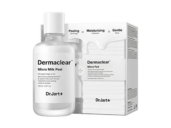 - Dr. Jart. Корейский бренд предлагает двухфазный лосьон Micro Milk Peel. В составе средства присутствует минеральная вода, пантенол, пептиды, кокосовое молоко, масло подсолнечника, смесь кислот: молочной, лактобионовой, салициловой. Вариант для домашнего применения с выдержкой 1–3 минуты. Вещество помещено в бутылочки по 150 мл, продается по цене от 2 тыс. руб.