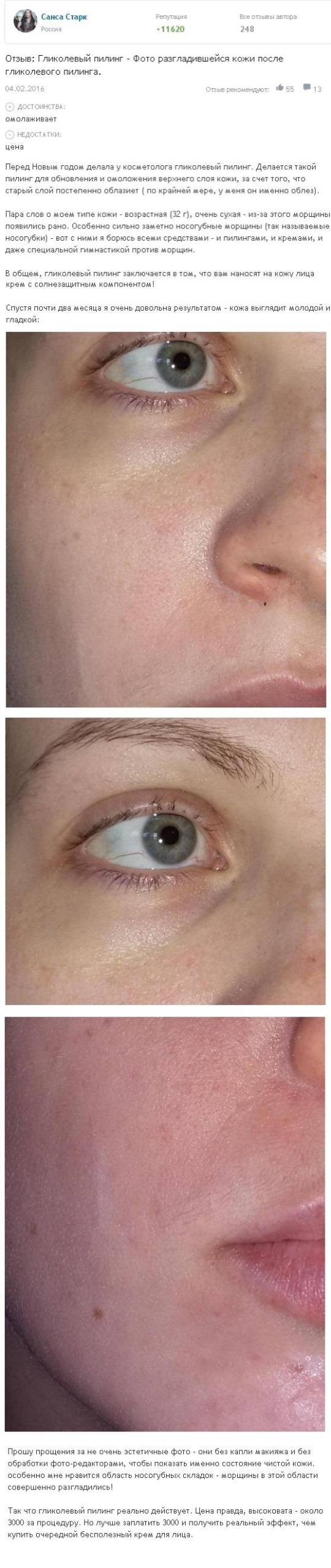 Пациентам гликолевый пилинг очень нравится, отмечается достойный эффект и доступная цена, мягкость воздействия и легкий реабилитационный период.