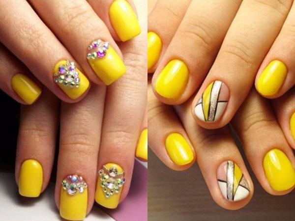 Желтая основа — подходящий выбор для тех, кто хочет угодить Желтой Земляной Свинке. Желтый маникюр украсьте ярким рисунком в виде новогоднего шара, конфетти. Особенно гармонирует желтый с золотом. Попробуйте украсить кончики ногтей золотистым напылением, несложным узором, паутинкой.