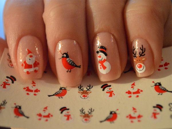 Зимняя тематика, изображение Санта-Клауса, оленей, мишек на фоне снежинок – беспроигрышный вариант для новогоднего торжества. Учтите, такой маникюр выглядит игриво и не подойдет к строгому, классическому платью.