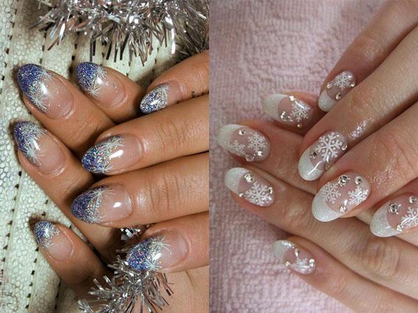 - ажурные снежинки, звездочки из страз, глиттера, морозные узоры смотрятся шикарно, подходят к любому праздничному наряду;