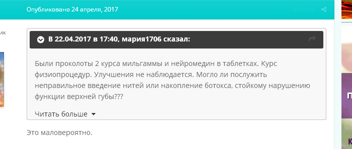 Участник пишет, что имплантация мезонитей не могла привести к нарушению функции верхней губы.