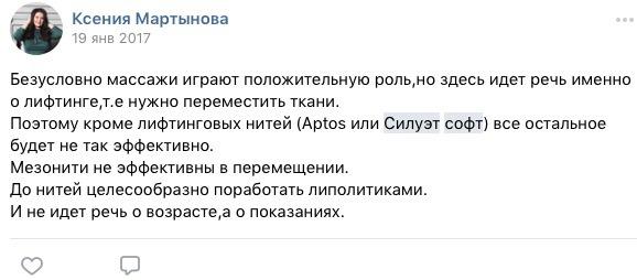 Мнения пациентов о нитях Silhouette Soft положительные. Операция проходит быстро, реабилитация не доставляет проблем. Процедура дает выраженный положительный эффект. Нити справляются с поставленными задачами.