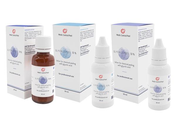 GLYCOLICPEEL 35%, 50%, 70% — распространенный химический пилинг, который обладает поверхностным действием. Подходит для лечения акне, рубцов, возрастных изменений, гиперпигментации, вросших волос. Кисточкой наносится на пораженную область лица.
