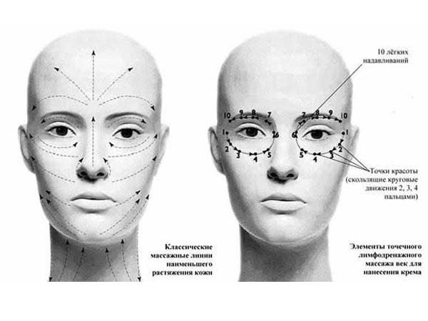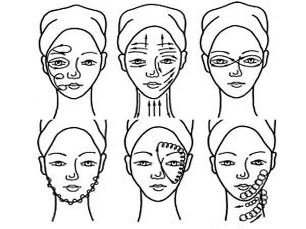- Вибрирующими движениями проходят по лицу поочередно: от центра лба, крыльев носа, уголков губ, середины подбородка в стороны.