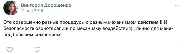 Пациентка не заметила устойчивого результата от озонотерапии.
