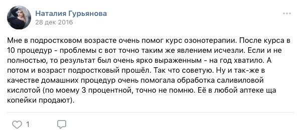 Озон улучшает обмен веществ и микроциркуляцию крови, восстанавливает функцию транспортировки кислорода, нормализует гормональный фон. Кожа очищается от угревой сыпи без следа. Уже после первого сеанса угри становятся менее болезненными и выраженными, запускается процесс их рассасывания.