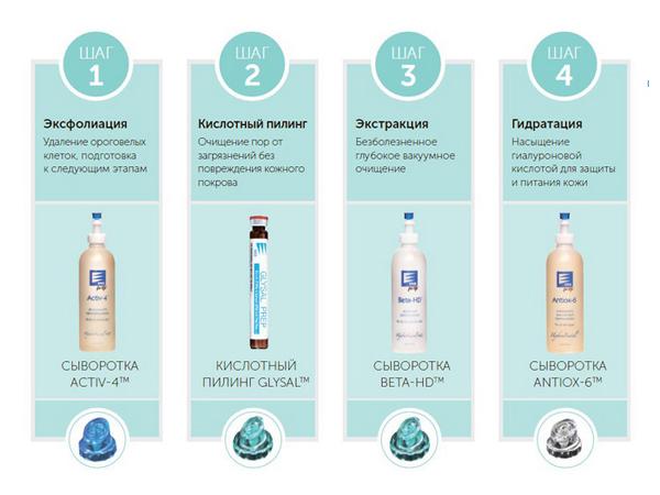 Важный момент! Для выполнения вмешательства по протоколу требуется использование только аппарата HydraFacial MD. Если пациенту предлагают вмешательство с другими вариантами приборов, то процедура хоть и может называться вакуумным пилингом, но не имеет права именоваться ГидроФасиал.