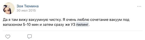 Резко отрицательного мнения о процедуре пациенты не высказывают. Положительный результат получает каждый, но сила эффекта устраивает не всех. Пациенты ожидают большего, оставляя за вмешательство от 5 тыс. руб. Не получив результат прогнозируемой силы, пациенты часто отказываются от курса, что мешает оценке заявленной эффективности от проведения ряда процедур.