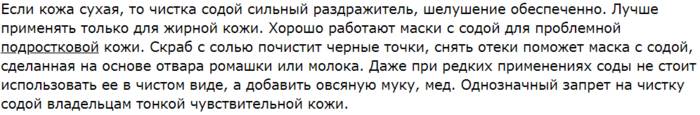 Скраб с содой и солью используют для очень жирной кожи с целью избавления от жирного блеска, проблем с акне.
