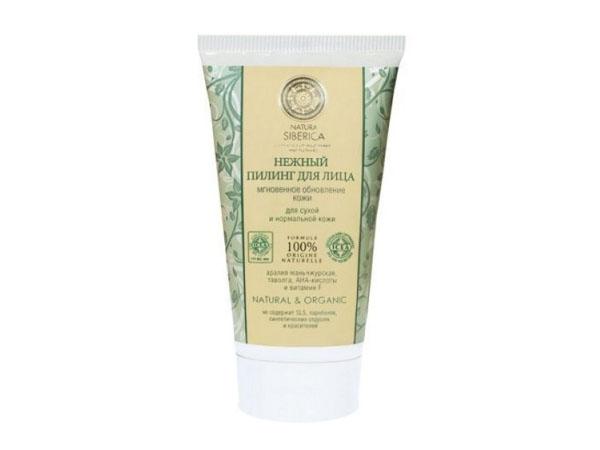 - Нежный, под названием Мгновенное обновление кожи. Отшелушивает дерму, усиливает ее защитный потенциал. Добавляет кожному покрову гладкости и упругости, улучшает оттенок лица. Кроме того, пилинг подготавливает лицо к последующему уходу, делая применение иных средств более эффективным. В составе есть аралия маньчжурская (улучшает тонус и энергетику дермы, защищает ее от климатических изменений), таволга (способствует обновлению кожного покрова), АНА-кислоты (деликатно удаляют ороговевшие частички), витамин F (отвечает за упругость, эластичность, тонус и обновление кожи). Способ применения пилинга: мягко массируя, распределить по увлажненному лицу, смыть. Средство входит в категорию Natural&Organic сертифицированных продуктов и подойдет обладательницам сухой и нормальной кожи. Объем тубы — 150 мл, стоимость — от 180 до 300 рублей.