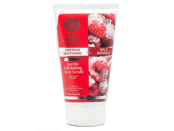 - Отбеливающий скраб-эксфолиант. Как и аналогичный пилинг, входит в серию Natura Siberica White. В составе есть АНА/BHA-кислоты, обеспечивающие деликатное отшелушивание ороговевших частичек. Также они активизируют выработку коллагена, увлажняют кожный покров и повышают его эластичность, уменьшают морщины, оказывают антиоксидантное действие и препятствуют развитию воспалений. Арктическая малина дополнительно регулирует деятельность сальных желез. Снежная кладония регулирует обменные процессы, тонизирует и обновляет дерму. Аралия Маньчжурская омолаживает кожу, придает ей мягкость и бархатистость, восстанавливает эластичность, защищает от негативных факторов. Скраб наносят на лицо, слегка массируя его, остатки удаляют теплой водой. Туба объемом 150 мл стоит 200–270 рублей.
