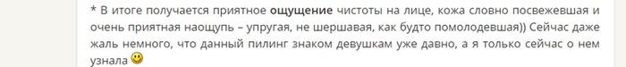 Хорошую репутацию заслужил и нежный пилинг Мгновенное обновление кожи. Пользователи отмечают, что продукт больше напоминает скраб, и может подойти не только для сухой и нормальной дермы, как рекомендует производитель. Например, этот отзыв оставила женщина с комбинированной кожей в возрасте 30+.