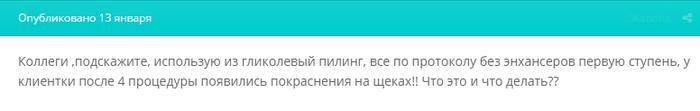 Косметолог спрашивает коллег, чем может быть вызвано покраснение щек у клиентки после проведения 4 процедуры.