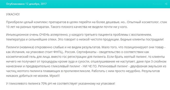 Пользователь пишет, что перешла на более дешевые линейки пилингов, но результат ужасный. Продукция не соответствует заявленному производителем качеству.