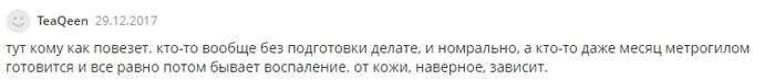 Пользователь пишет о зависимости результата, побочных явлений и индивидуальных особенностей кожи.