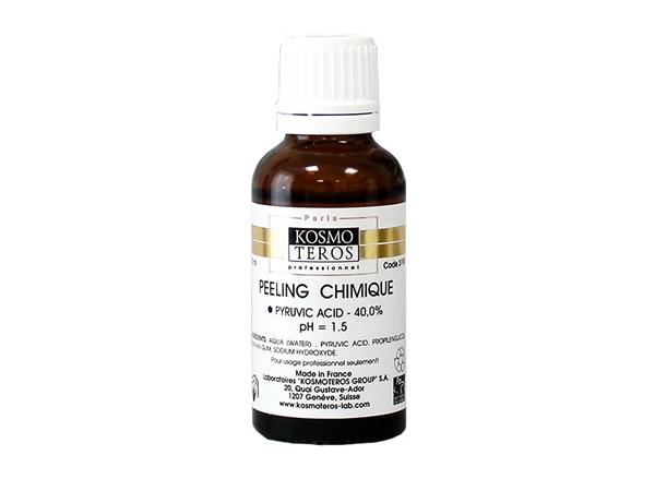 Химический пилинг с пировиноградной кислотой Космотерос предназначен для профессиональной поверхностной эксфолиации. Активным ингредиентом представлена пировиноградная кислота концентрацией 40%. Эффективно очищает, удаляет ороговевшие клетки, нормализует кислородное дыхание. Оказывает противовоспалительное действие, регулирует работу сальных желез для предупреждения появления акне. В результате наблюдается лифтинг эффект, сокращается количество морщин. Купить 30 мл можно за 2200 руб.