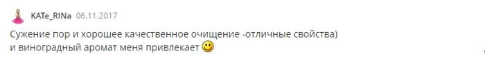 Пользователь пишет о хорошем эффекте очищения лица, сужения пор после применения виноградного пилинга Теана.