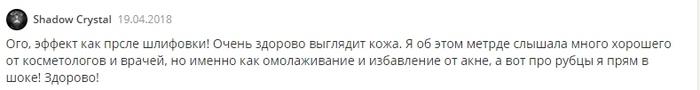 Пользователь пишет о выраженном результате как после шлифовки. Не раз слышала положительные отзывы от врачей о процедуре плазмолифтинга для омоложения и избавления от акне. Потрясает результат разглаживания рубцов.