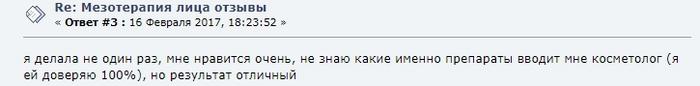 Пользователь пишет о неоднократном проведении мезотерапии, хорошем результате процедуры.