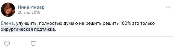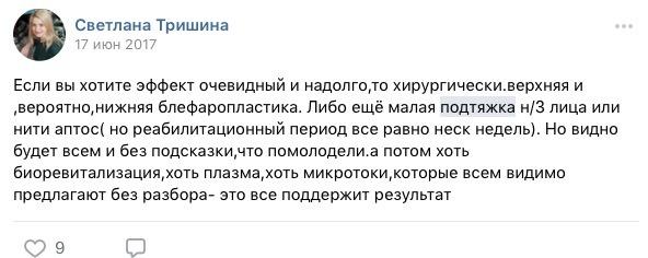 Косметолог понимает, что для кардинального решения проблем нужна пластика. Поддержать результат можно любыми косметологическими процедурами.