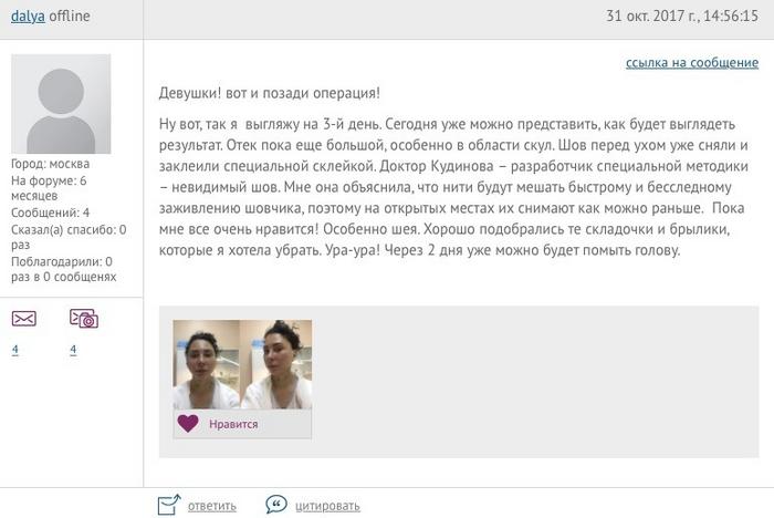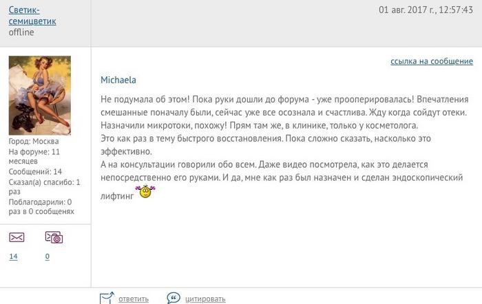 Пациентка оценивает результат положительно, даже с учетом начала восстановительного периода.