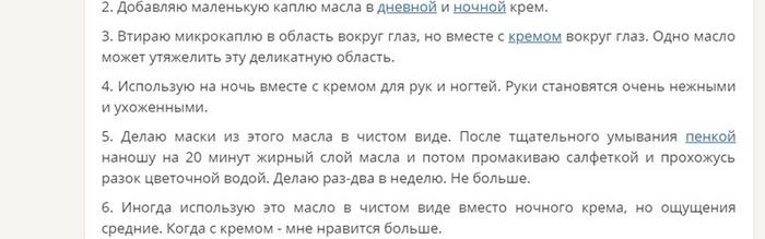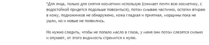 Еще одна женщина считает, что это базовое масло долго впитывается и не совсем подходит для нанесения в чистом виде. И все же она нашла для себя несколько способов применения этого продукта.
